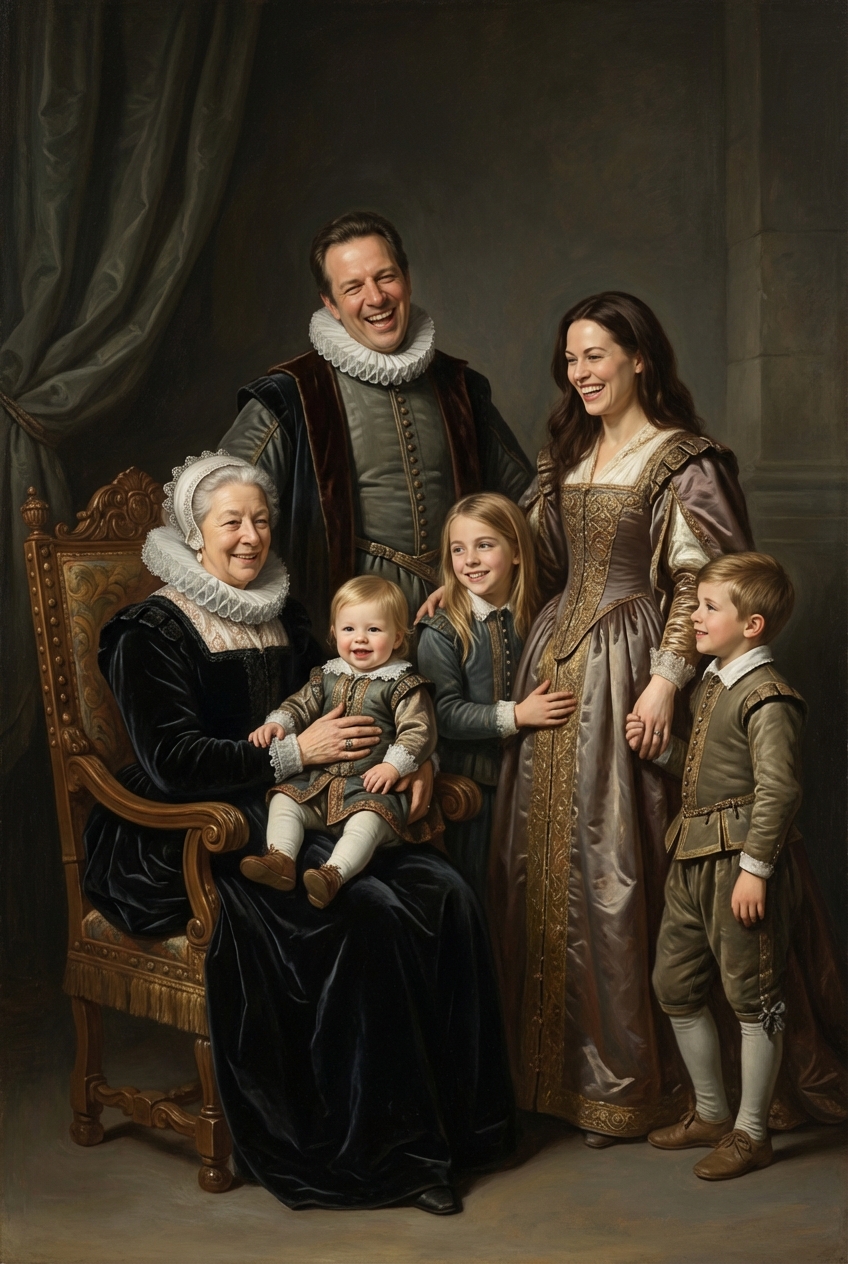 Onze AI herkent automatisch de gezichten op de foto. Of het nu gaat om één portret of een foto van je ouders samen, het resultaat wordt in dezelfde stijl gemaakt.